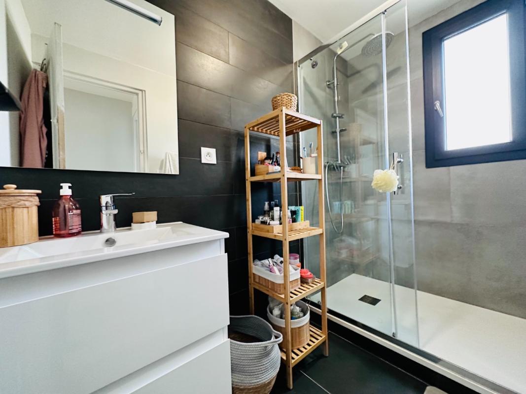 Dès l’entrée, vous serez séduits par ses volumes et sa luminosité : une spacieuse entrée avec placard aménagé, une chambre pouvant faire office de bureau, une vaste pièce de vie baignée de lumière ouvrant sur une grande terrasse et le jardin, ainsi qu’une cuisine contemporaine entièrement équipée (réfrigérateur, four, plaques, hotte, lave-vaisselle et îlot central). Ce niveau comprend également des toilettes indépendantes et une salle d’eau avec meuble vasque.