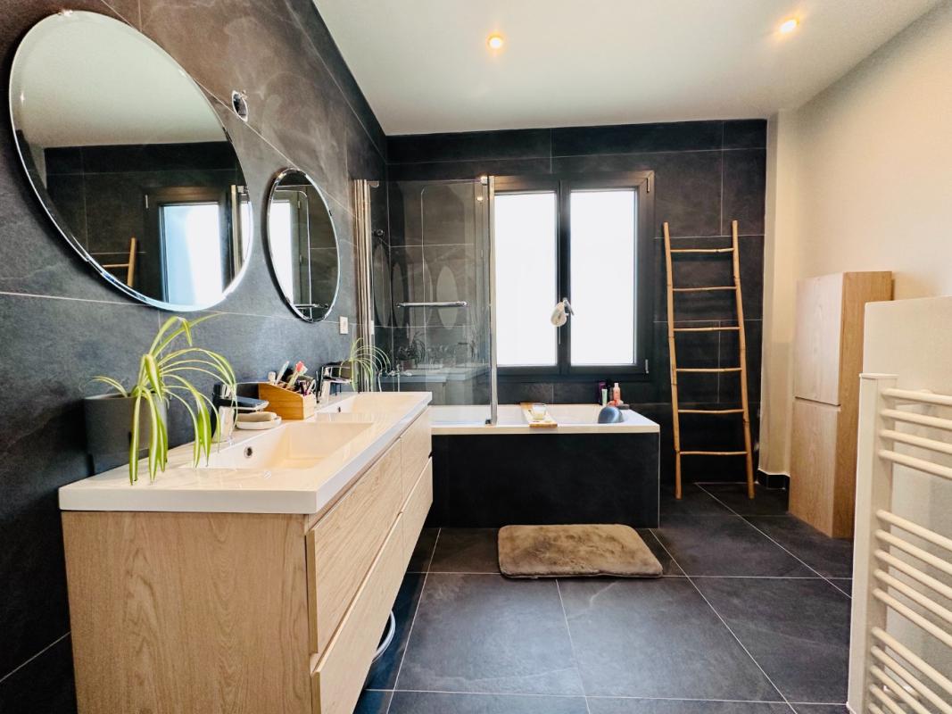 À l’étage, une superbe suite parentale d’environ 30 m² offre un véritable espace privé avec grande chambre, dressing d’environ 10 m² et salle de bains complète (double vasque, baignoire et WC).